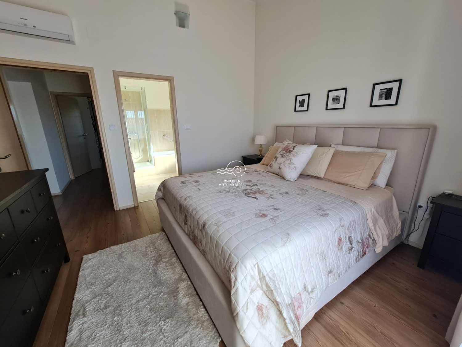 Darüber hinaus befinden sich im ersten Stock drei Schlafzimmer, zwei Badezimmer und ein Schlafzimmer, das zu einem großen begehbaren Kleiderschrank umgebaut wurde.