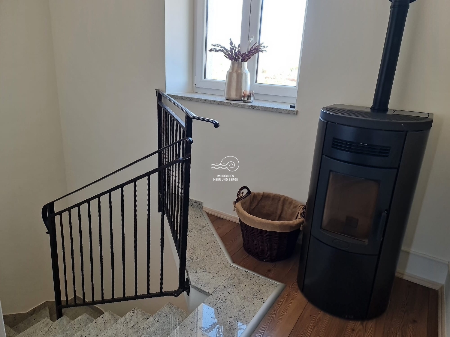 Die Heizung erfolgt über einen Pelletofen und Klimaanlagen.