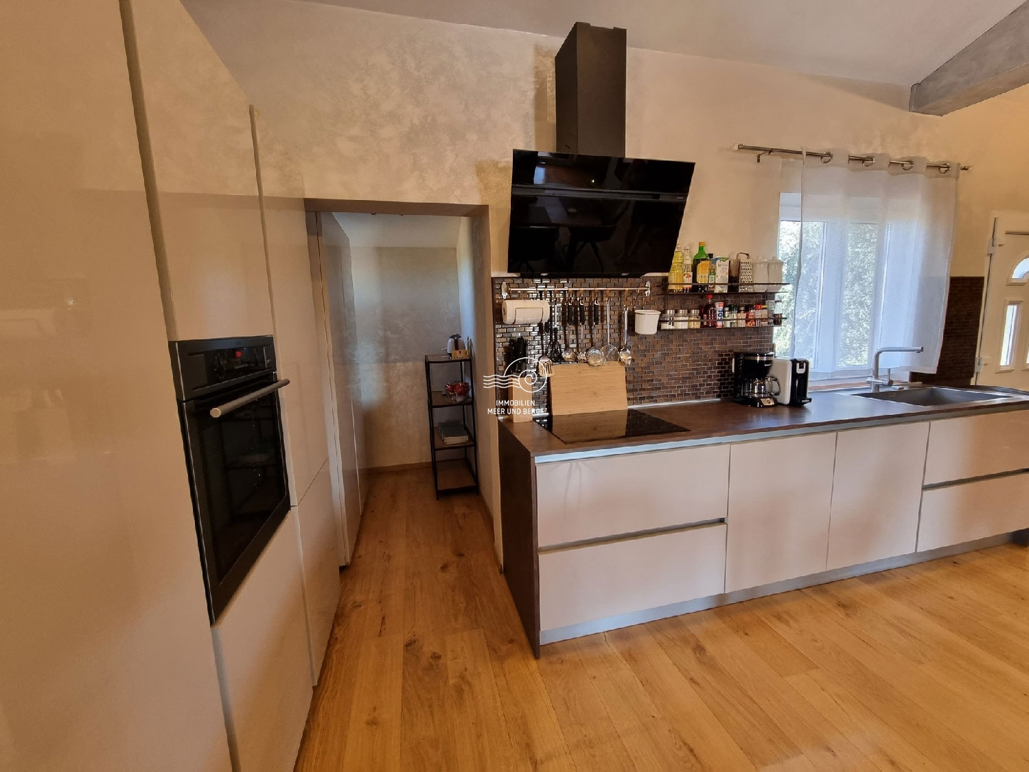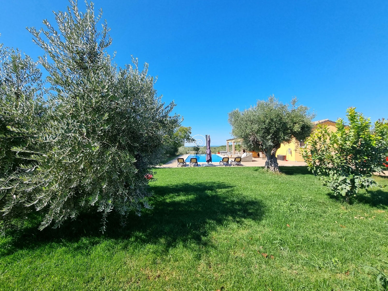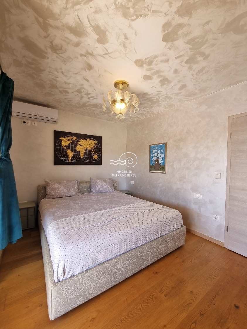 Zum Verkauf steht eine luxuriöse Villa in Novigrad mit Meerblick, einem Pool mit Meerwasser, einem Whirlpool und Blick auf die Olivenhaine. Sie befindet sich in einer sehr ruhigen Umgebung, wo Ihnen Ruhe und Privatsphäre garantiert sind! Geeignet für Tourismus oder privat. Definitive Rendite der Investition! Der Eingang besteht aus einer Küche mit Essbereich und einem großen Empfangsbereich mit einem bezaubernden Blick. Die Küche ist vom italienischen Hersteller und komplett ausgestattet. Es gibt auch einen Abstellraum, ein Badezimmer mit Duschkabine und ein Schlafzimmer mit Zugang zum Garten. Das zweite Schlafzimmer bietet eine wunderschön eingerichtete Umgebung mit Blick auf den Pool, ein Badezimmer und eine Jacuzzi-Badewanne. Durch das Haus und den Hof erstreckt sich spezielle Beleuchtung. Der 50 m2 große Keller ist eine Wellnessoase mit Saunen und einem Ruhebereich. Die Terrasse ist überdacht und hat etwa 45 m2 mit einem herrlichen Blick auf den 102 m2 großen Pool (17m x 6m). Im Hof befinden sich 42 alte Olivenbäume, die wunderschön beleuchtet sind. Die Rasenflächen verfügen über ein Bewässerungssystem. Es gibt einen privaten Eingang zum Grundstück mit Alarm und automatischer Öffnung