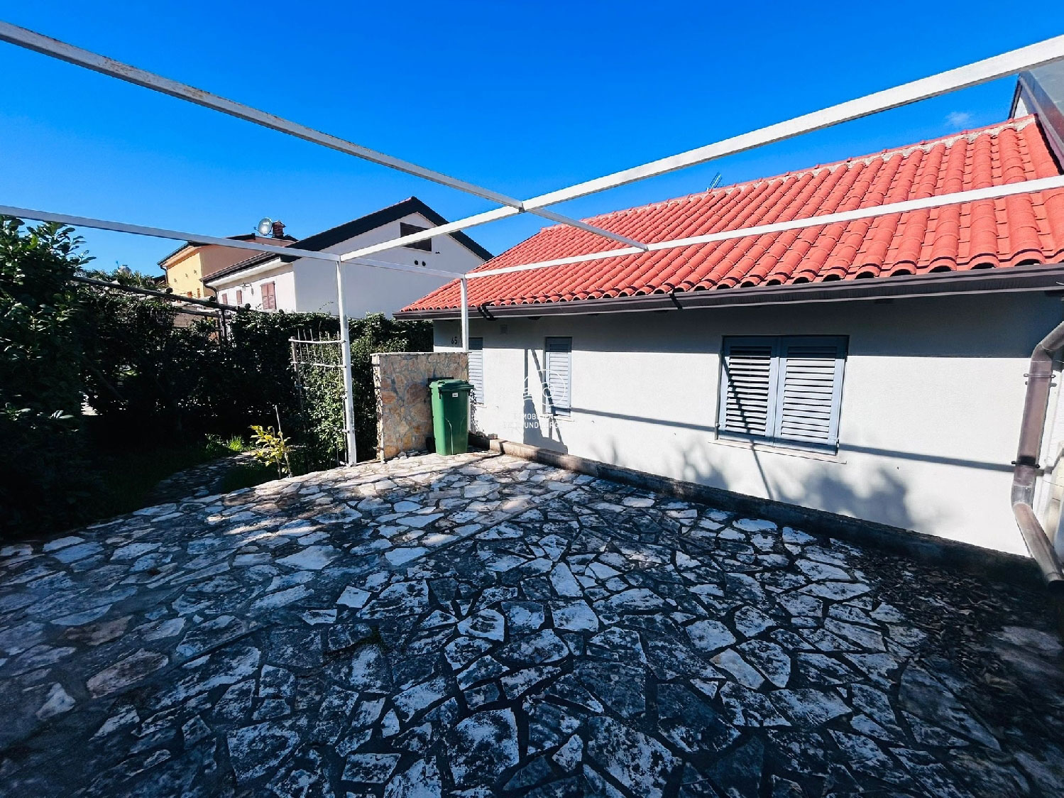Das Haus verfügt über einen Hof und einen Gartenbereich von 160 m2 mit 2 privaten Parkplätzen.