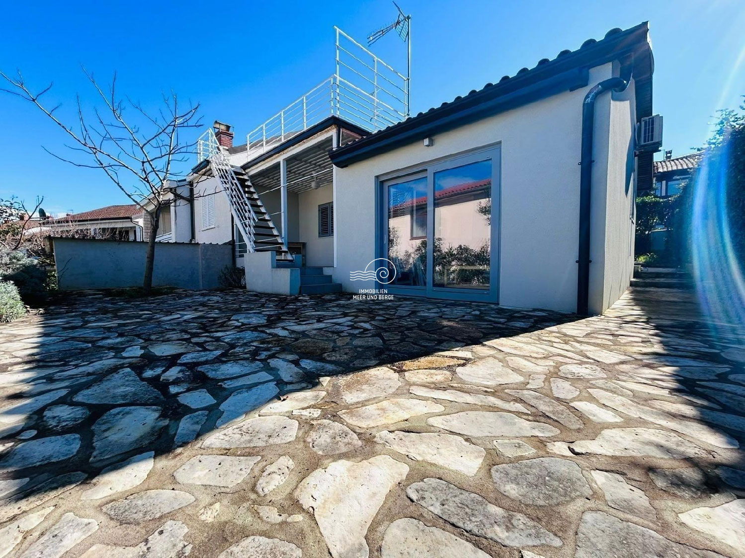 Zum Verkauf steht ein attraktives Doppelhaus mit großem Potenzial in der begehrtesten Gegend der Umgebung von Umag, nur 150 m vom Meer, 1 km vom Golfplatz und 12 km von der slowenischen Grenze entfernt.
