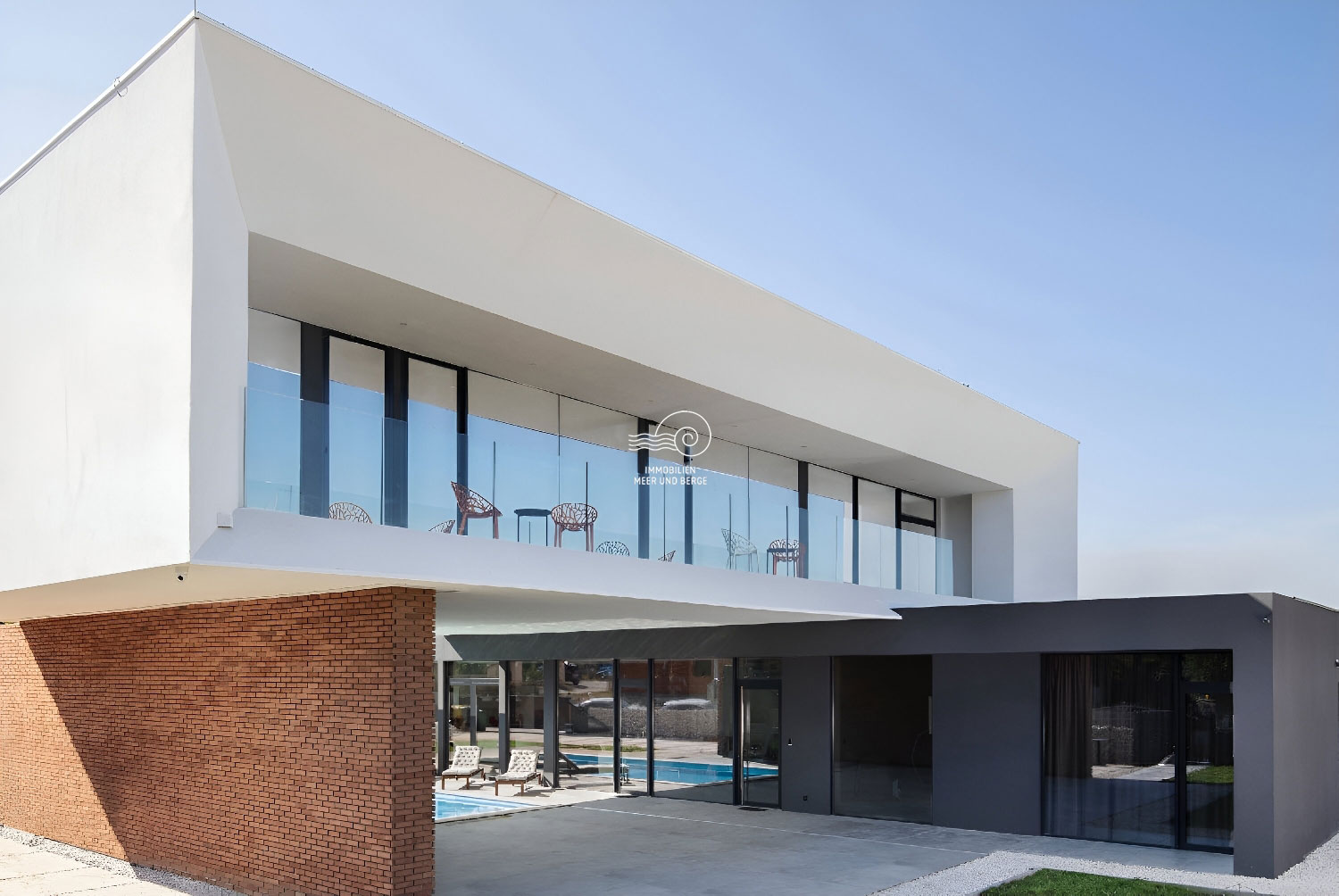 Die Villa ist ein Neubau, Ende 2021 fertiggestellt, in einzigartigem architektonischen Stil. Die Ausführung erinnert an das Pariser Geschäftsgebäude Grande Arche, ein in der Welt der Architektur bekannter Bau charakterisiert durch einen großen Bogen, der zwei Gebäude miteinander verbindet. Im Inneren dieser istrianischen Villa ist insbesondere die Eingangslobby hervorzuheben mit einer Deckenhöhe von insgesamt 7,5 m, umgeben von luftigen Treppen, die zur oberen Etage führen. Besonders attraktiv ist die Nähe der Innenwohnflächen zum Pool. Letzterer befindet sich teils unterhalb der oberen Etage, nur 5m vom Wohnzimmer und Esszimmer sowie nur 2m von der Küche entfernt, was ein besonderes Wohnerlebnis und Wohlbefinden garantiert.