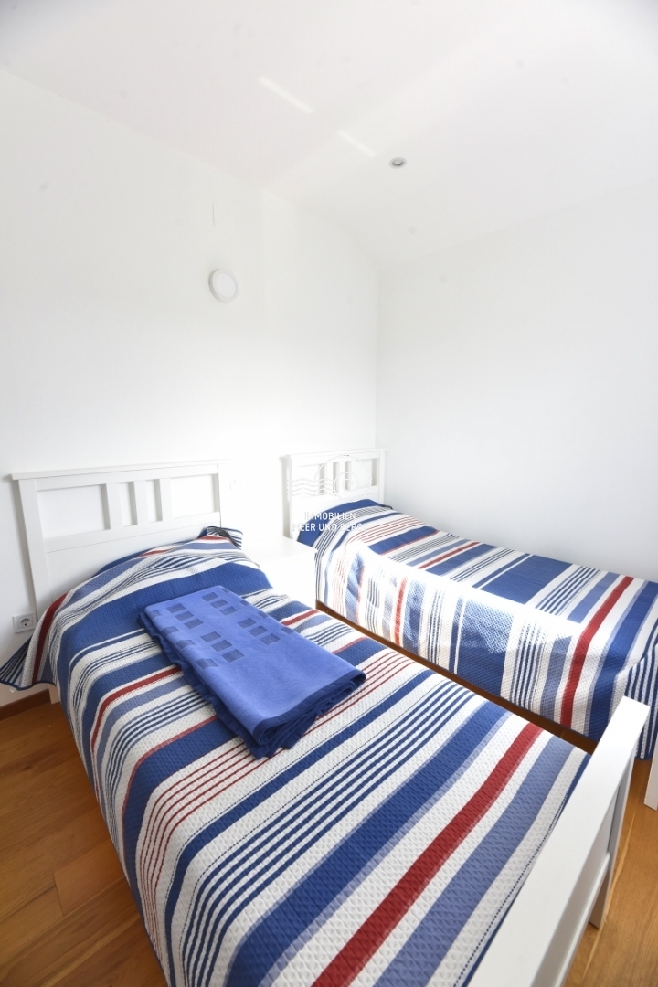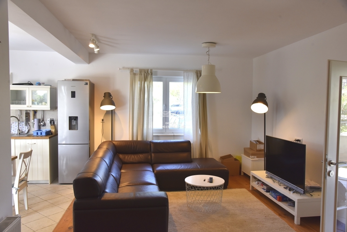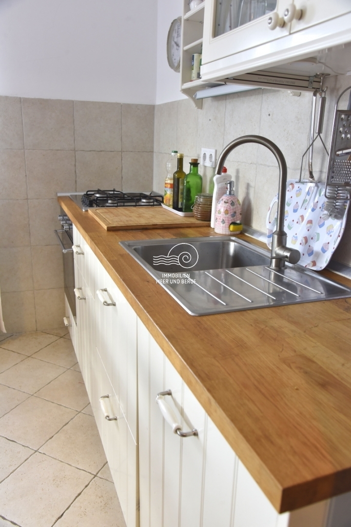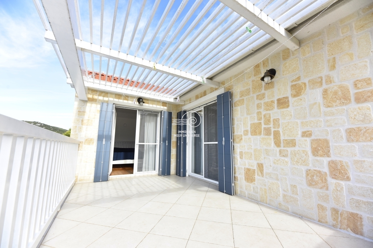 House with swimming pool for sale in Tribunj, Sovlja bay. The house consists of the ground floor: storage room, living room with kitchen and dining room, bathroom, bedroom, outdoor storage, covered terrace, pool and garden around the pool; First floor: three bedrooms with bathrooms, a storage room and an uncovered terrace. The area of the property is approx. The living area is approx. 530m2, and the living area of the house is 135m2. Each room has inverter air conditioners. The size of the pool is 7m x 4m. The heating system consists of fuel oil and radiators. There is also a solar system for the production of hot water. There is also a barbecue in the garden, and the garden has a programmable irrigation system.