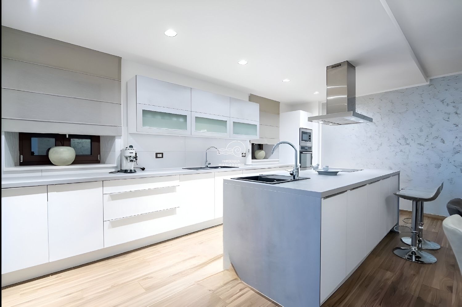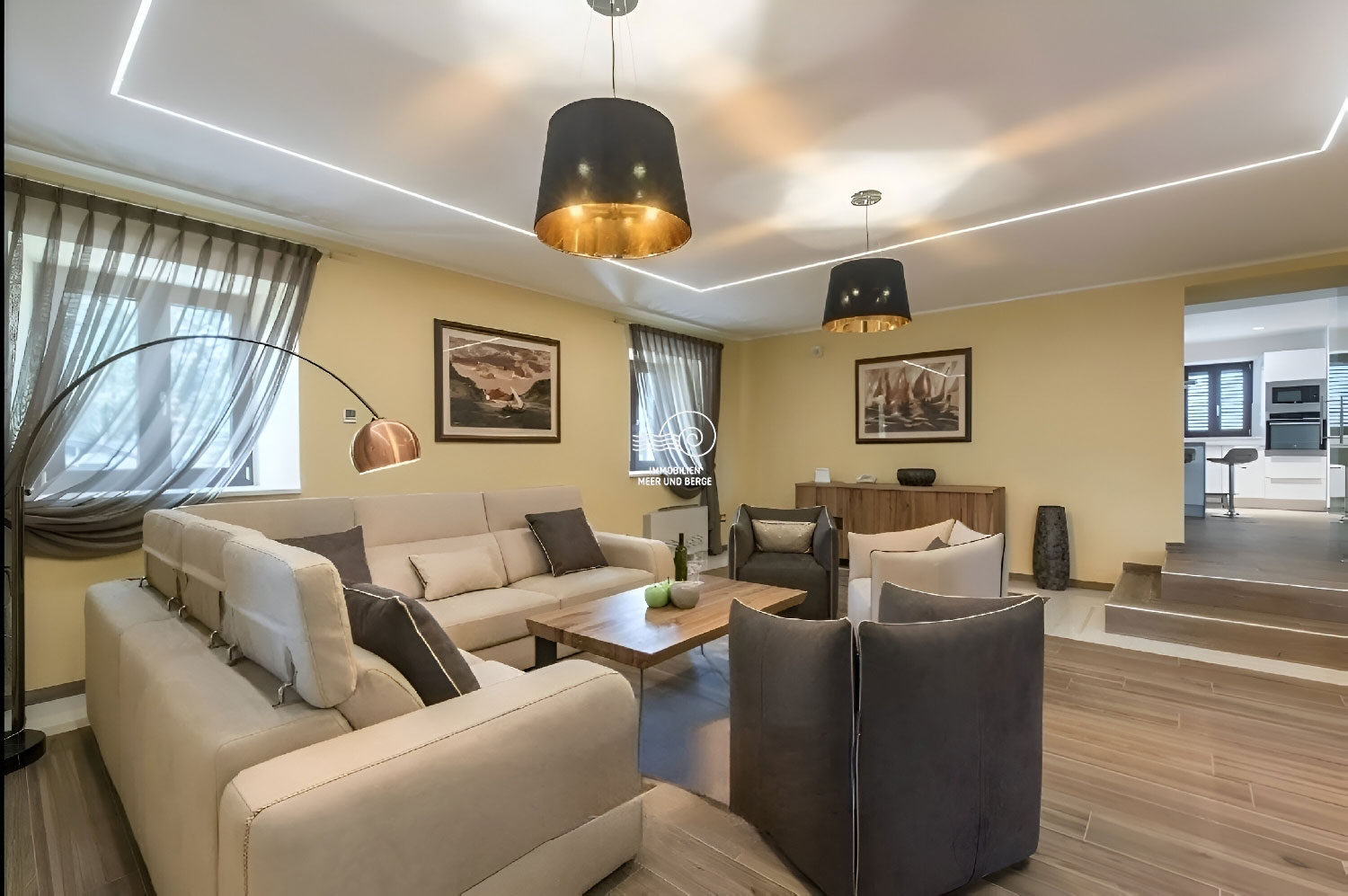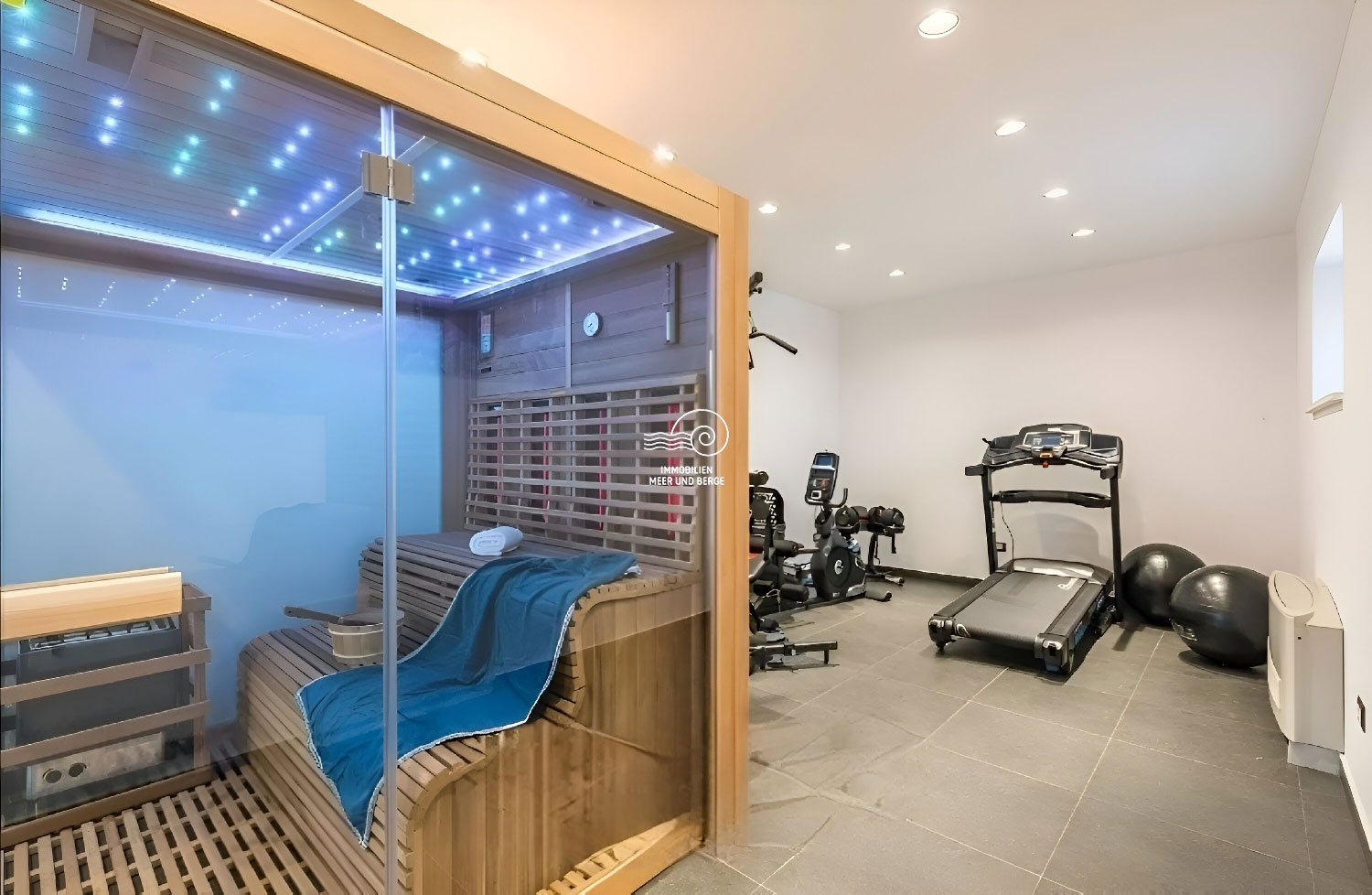 On the ground floor of this modern villa there is an indoor pool, a sauna, a room with fitness equipment, a wine cellar, an entertainment room, a modern kitchen and a spacious living room with a dining room. On the upper floor there are 4 comfortable bedrooms with 4 bathrooms. On the same floor there is a spacious terrace with a jacuzzi and a view of the olive groves and the park. Villa LV is air-conditioned, has WiFi and private parking for 8 cars. It is located near the beaches and offers everything for a relaxing vacation.